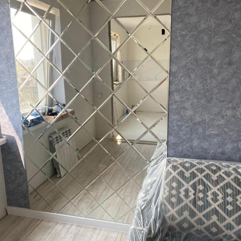 Использована зеркальная квадратная и треугольная плитка с фацетом.